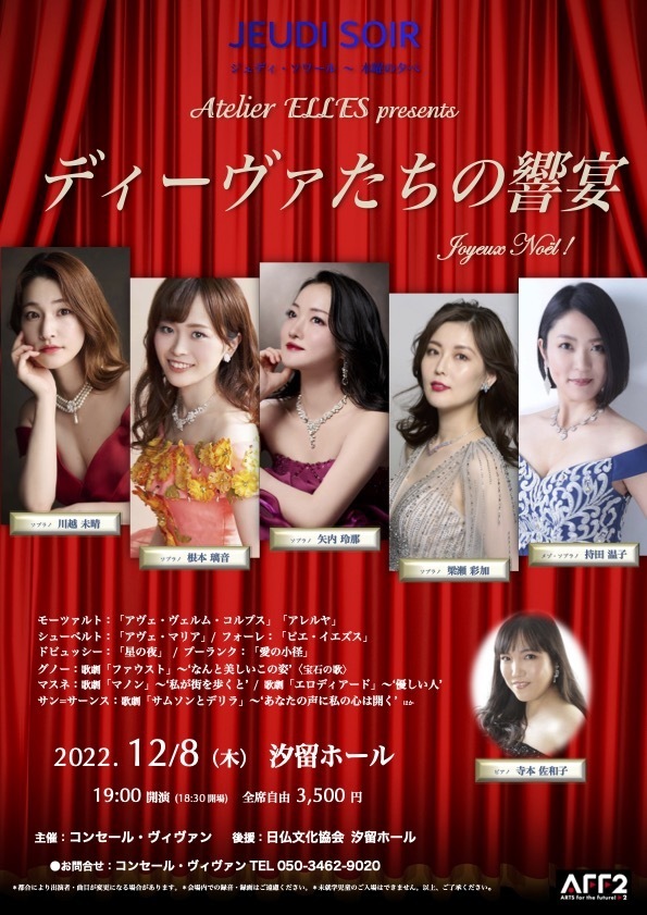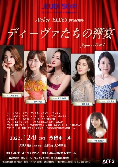 | 2017/11/2 | 新宿十二社熊野神社近く、十二社通り沿いの〈ガルバホール〉を活動の拠点とした若手歌手たちを中心とした歌劇団「歌劇座十二社(じゅうにそう)」旗揚げです。アトリエ・エルのメンバーも多く参加します。 |
